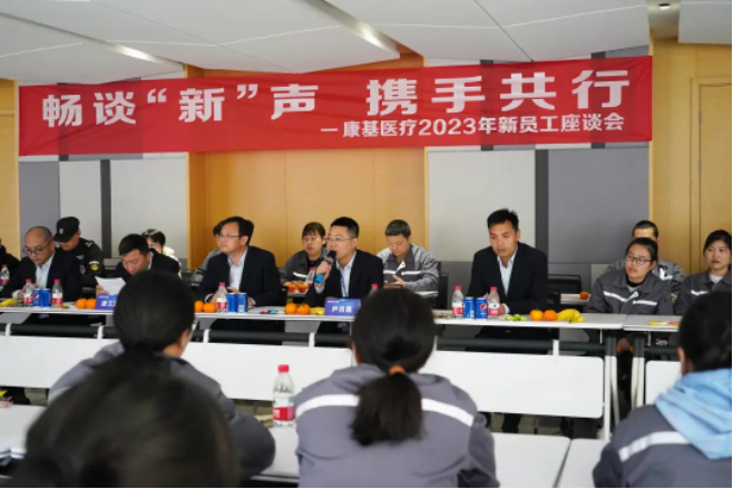 座談會上,唐文鵬副總經理首先歡迎新員工選擇加入康基醫療,并向新員工們介紹了企業發展現狀及工會相關情況。在談及新員工座談會的目的和意義時,唐總鼓勵新員工敞開心扉,暢所欲言,在不斷的溝通交流中,增強對公司的歸屬感。